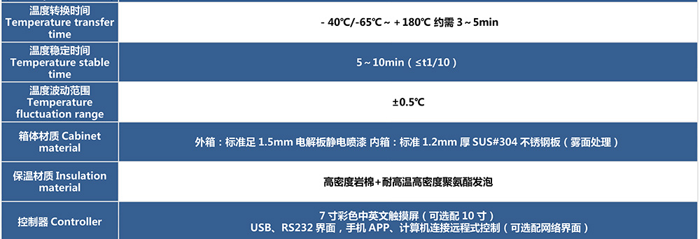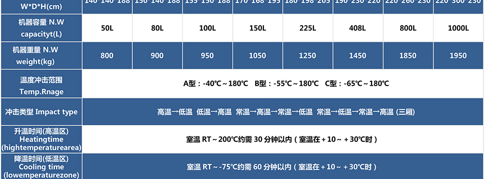 三廂式冷熱沖擊試驗箱型號命名及參數(shù)表