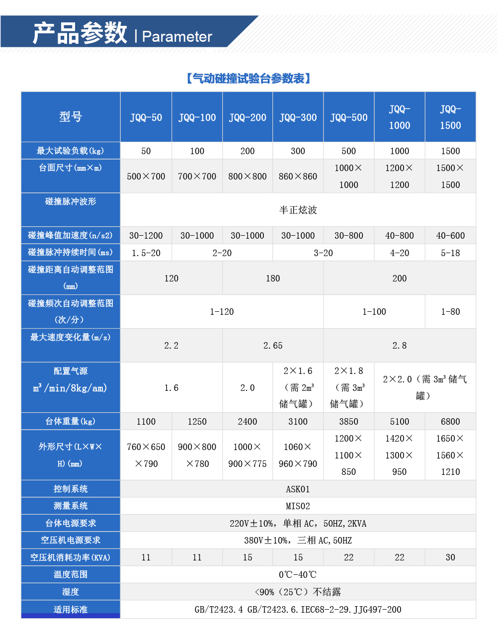 產品型號:JQQ-100 品牌:劍 喬 用途:氣動碰撞試驗臺:用于實驗室模擬產品在實際使用中,需要承受的連續沖擊破壞的能力,以此來評定產品結構的抗沖擊能力,并通過試驗數據,優化產品結構強度。正確評定產品的連續咨詢熱線:13829135130