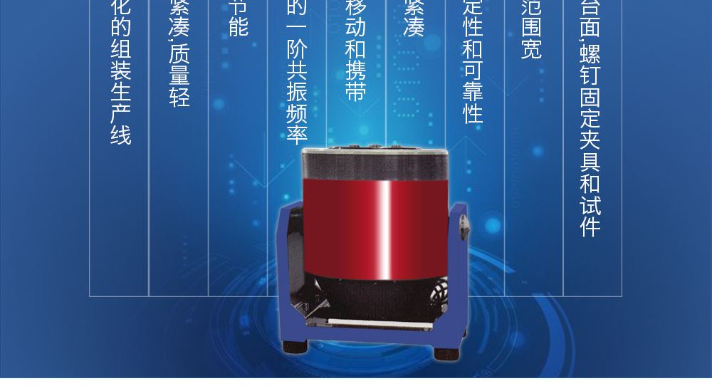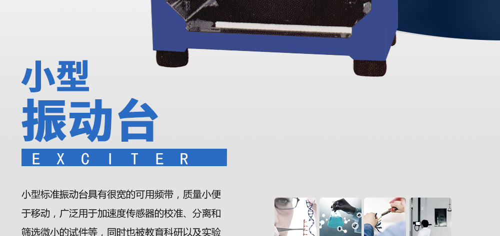 用途:小型標準振動臺具有很寬的可用頻帶,質量小便于移動,廣泛用于加速度傳感器的校準、分離和篩選微小的試件等,同時也被教育科研以及實驗室廣泛采用。