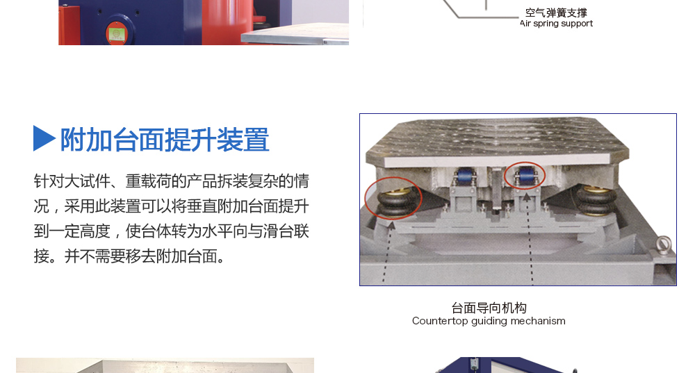 產品型號: 品牌:劍 喬 用途:擴展臺面是否需要輔助支撐與導向裝置,取決于用戶產品試驗的重量和偏載情況。劍喬公司提供不同規格的承載氣囊及不同形式的導向裝置。配備輔助支撐和導向裝置可以大大提高設備的承載能咨詢熱線:13829135130